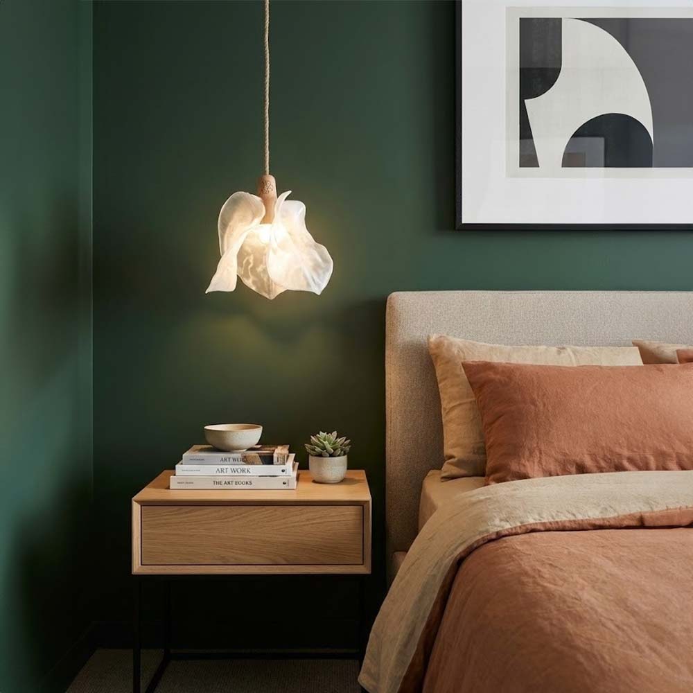 De combinatie van witte doorschijnende bloemblaadjes en een houten fitting staat voor de B-natural collectie; verfijnd en gracieus, met natuurlijke flamboyantie.