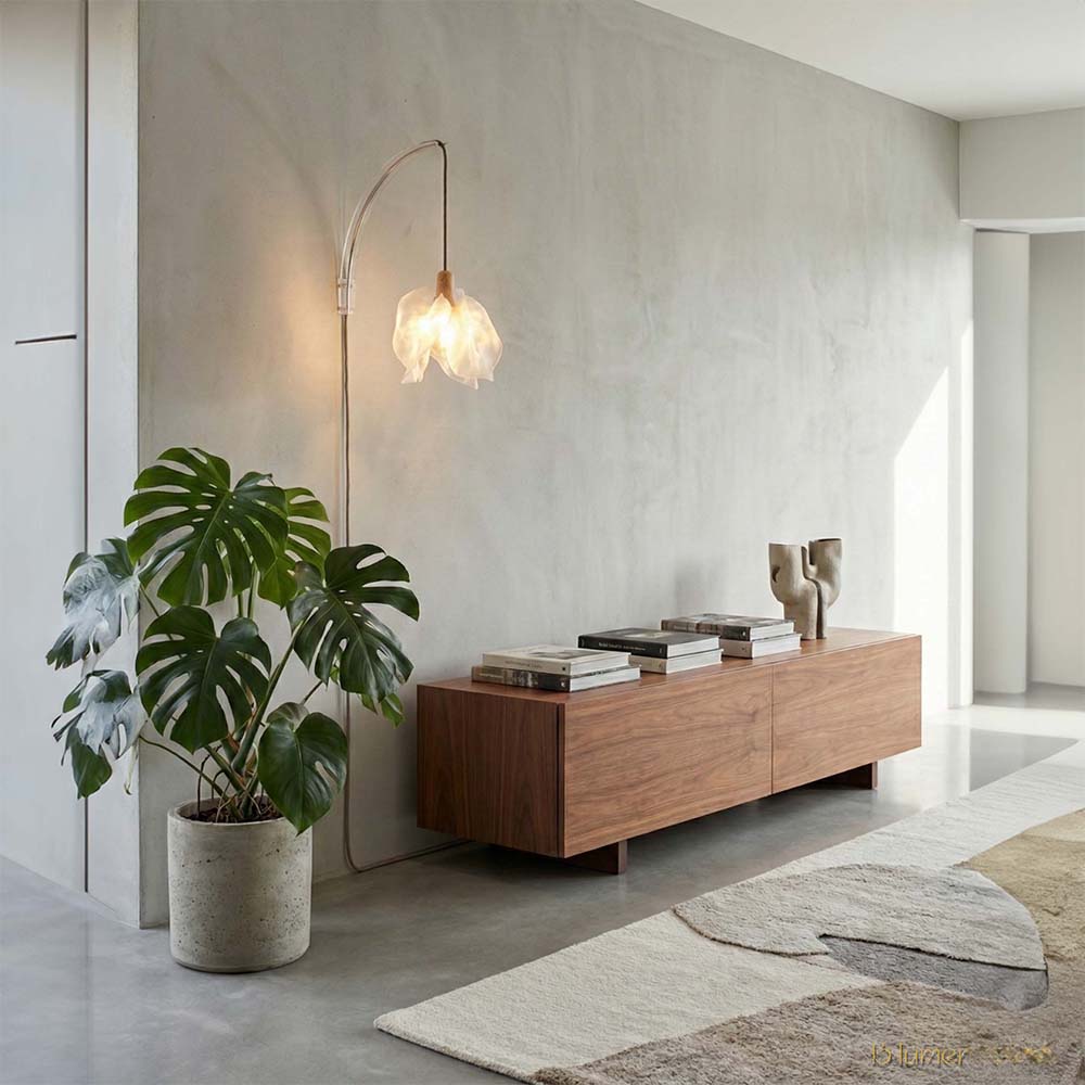 De combinatie van witte doorschijnende bloemblaadjes en een houten fitting staat voor de B-natural collectie; verfijnd en gracieus, met natuurlijke flamboyantie.