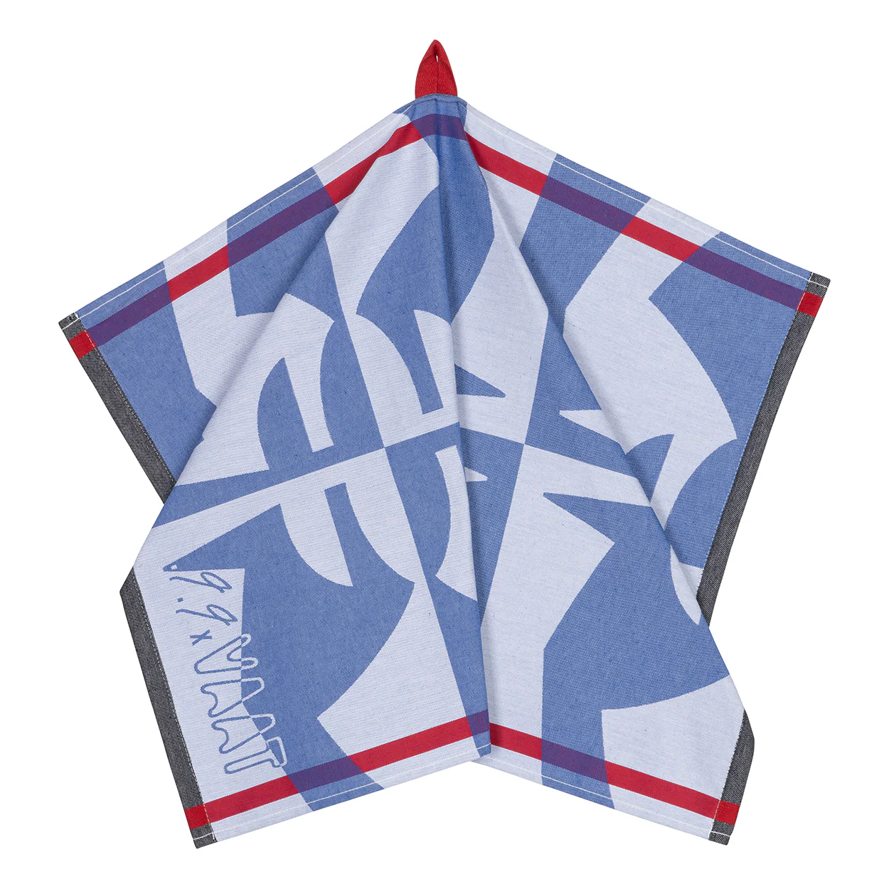 Het lusje om de doeken op te hangen zit midden op de lange zijde, waardoor ze ook nog eens stijlvol hangen. Uiteraard kunnen ze gewoon in de wasmachine. Bedacht in Amsterdam, geproduceerd in Portugal.