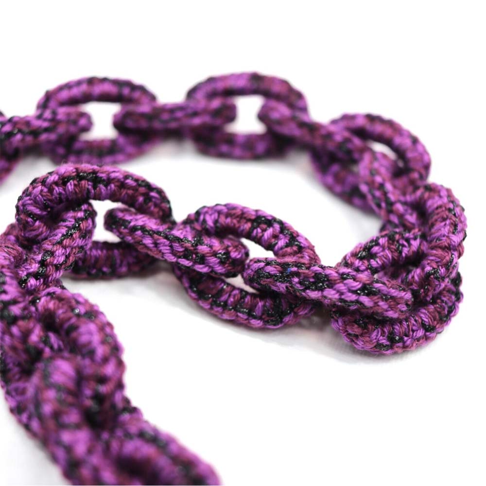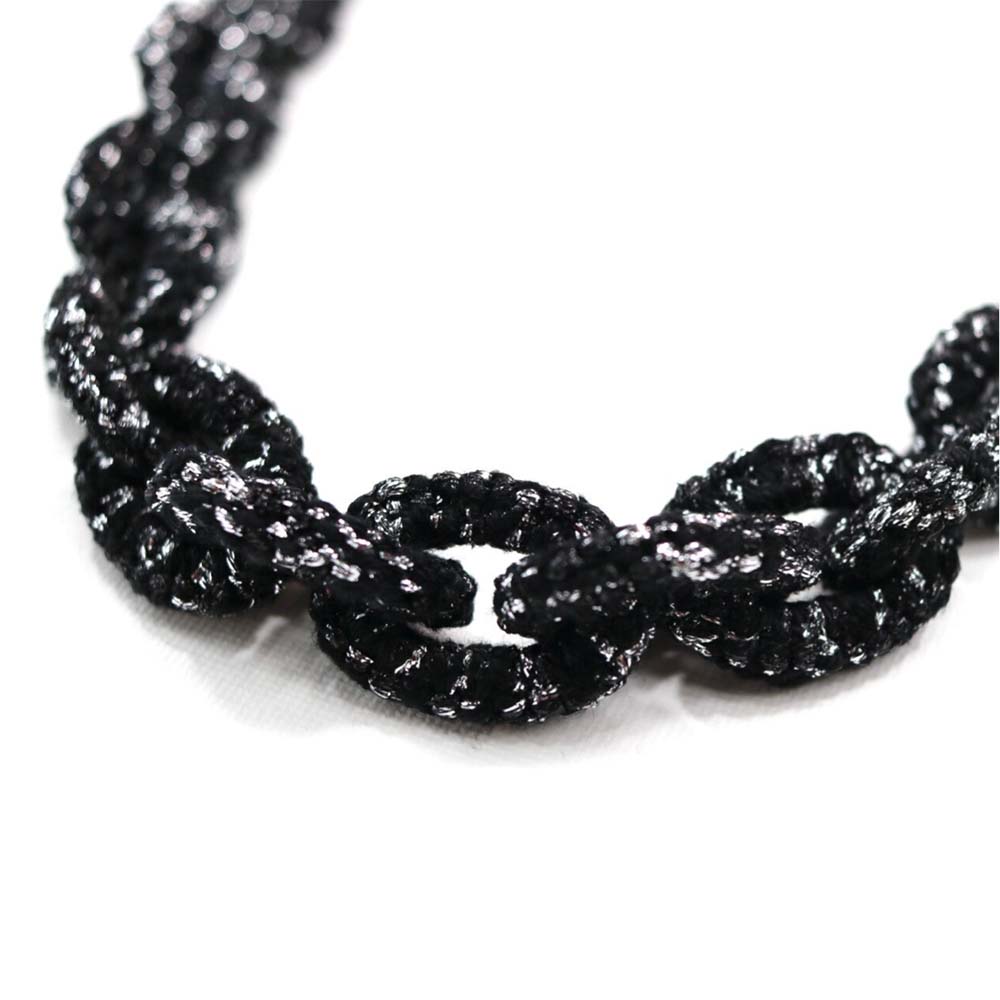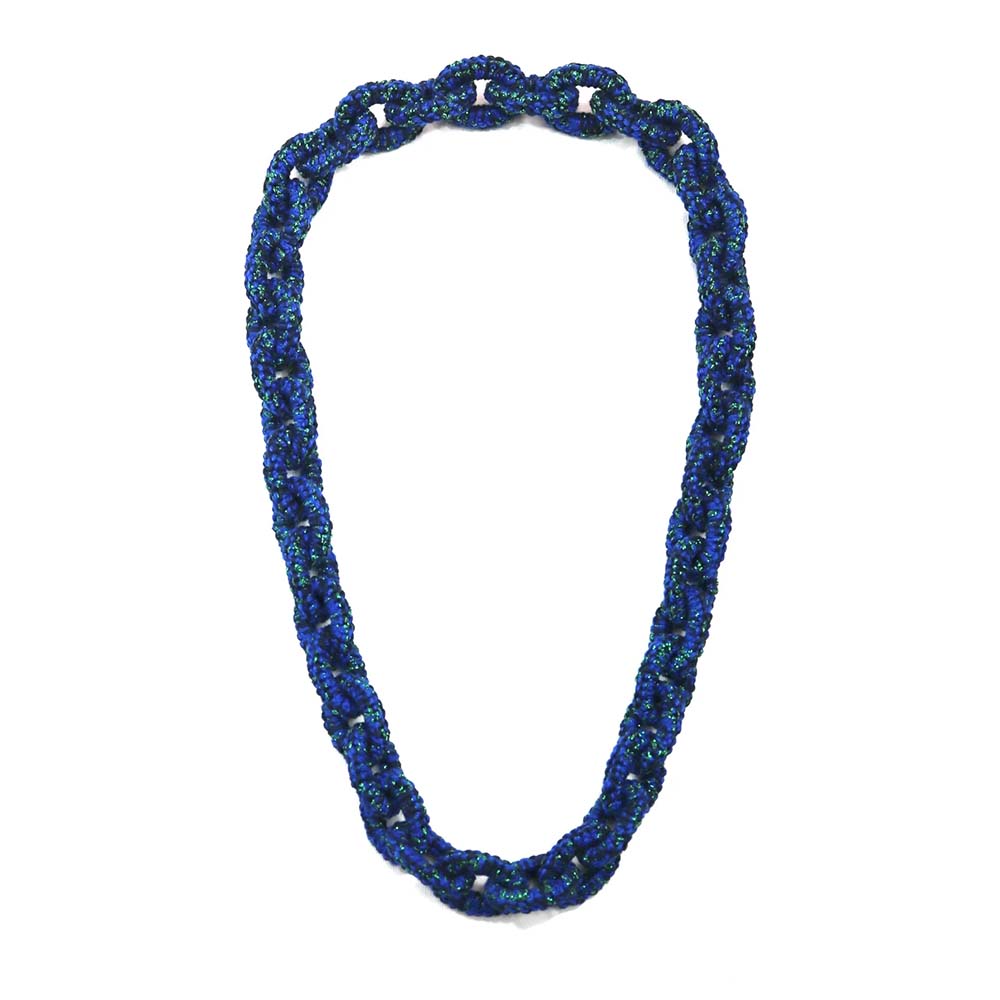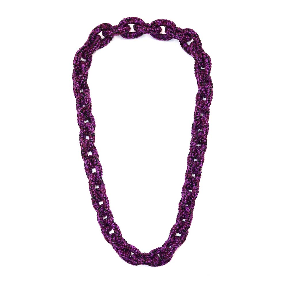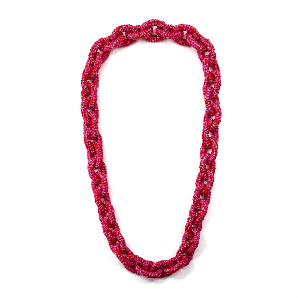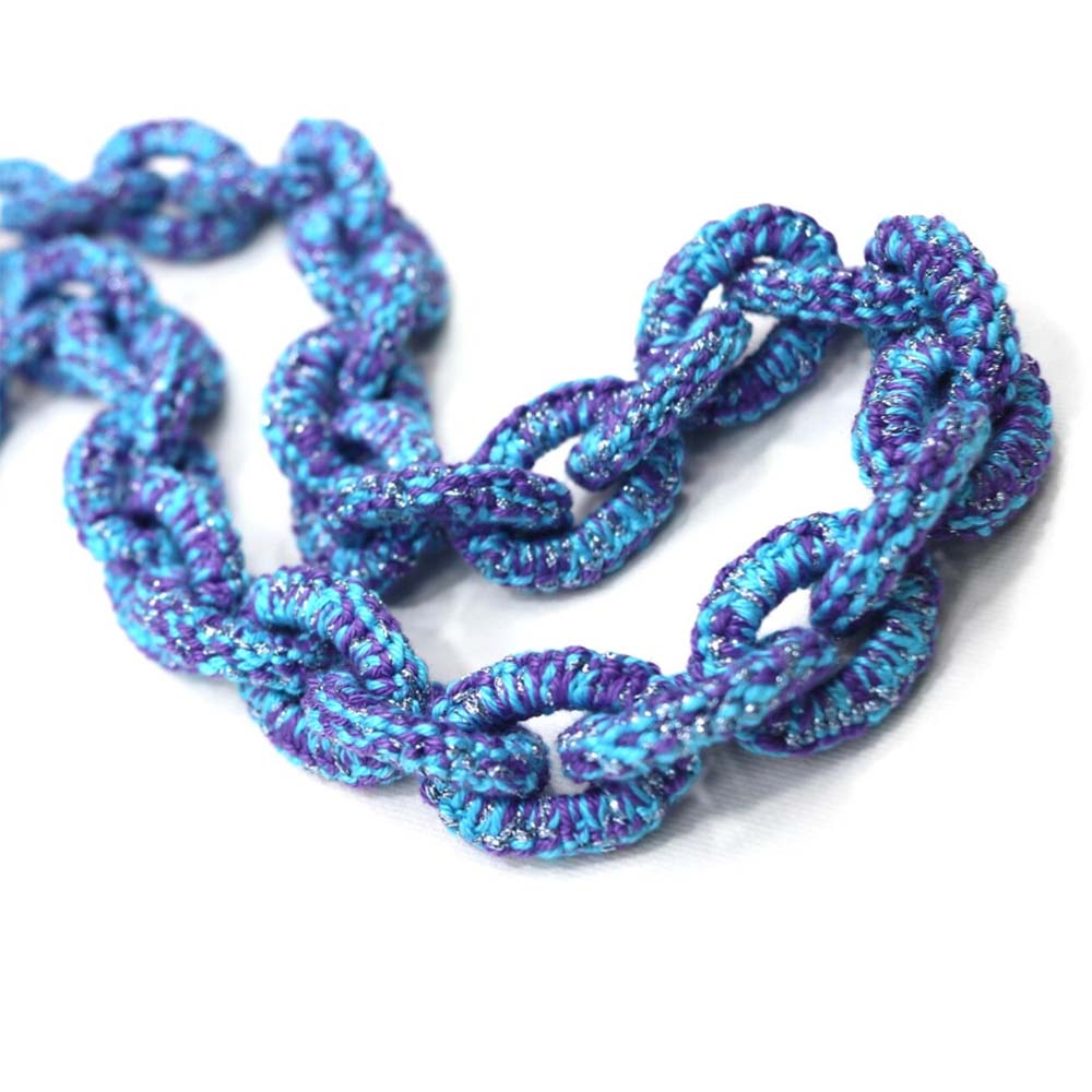 Ketting Jade. Frivolité is een uniek handwerktechniek, waarbij op kant-lijkend weefsel wordt vervaardigd.