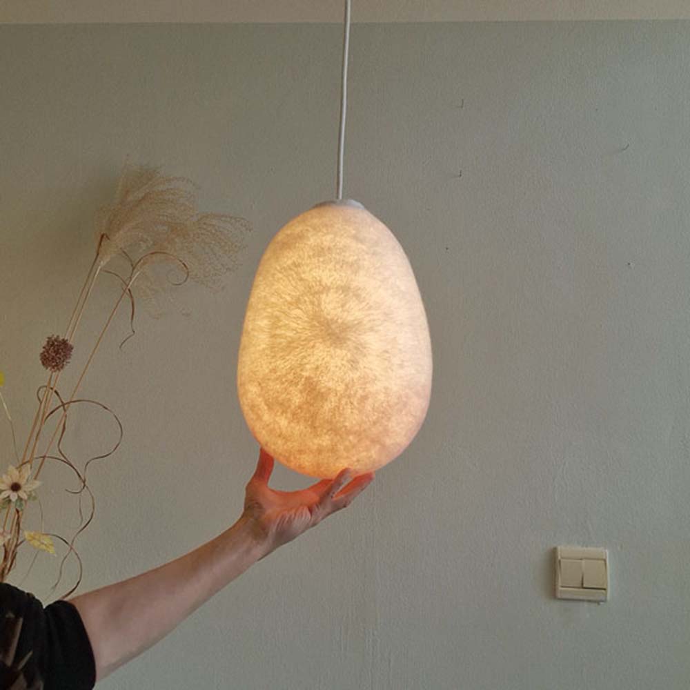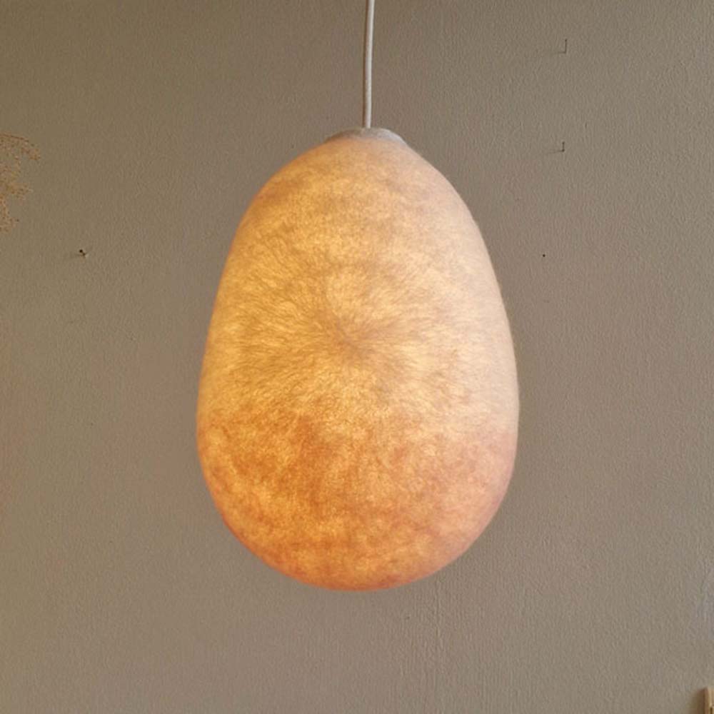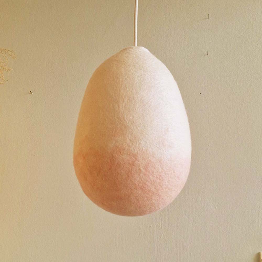 Deze langwerpige PYL (Small) heeft een zachte lieve uitstraling. De lamp is handgemaakt van 100 % schapenwol. Aan de onderzijde van de wol is roze wol toegevoegd waardoor deze lamp net even anders is dan een standaard PYL lamp.