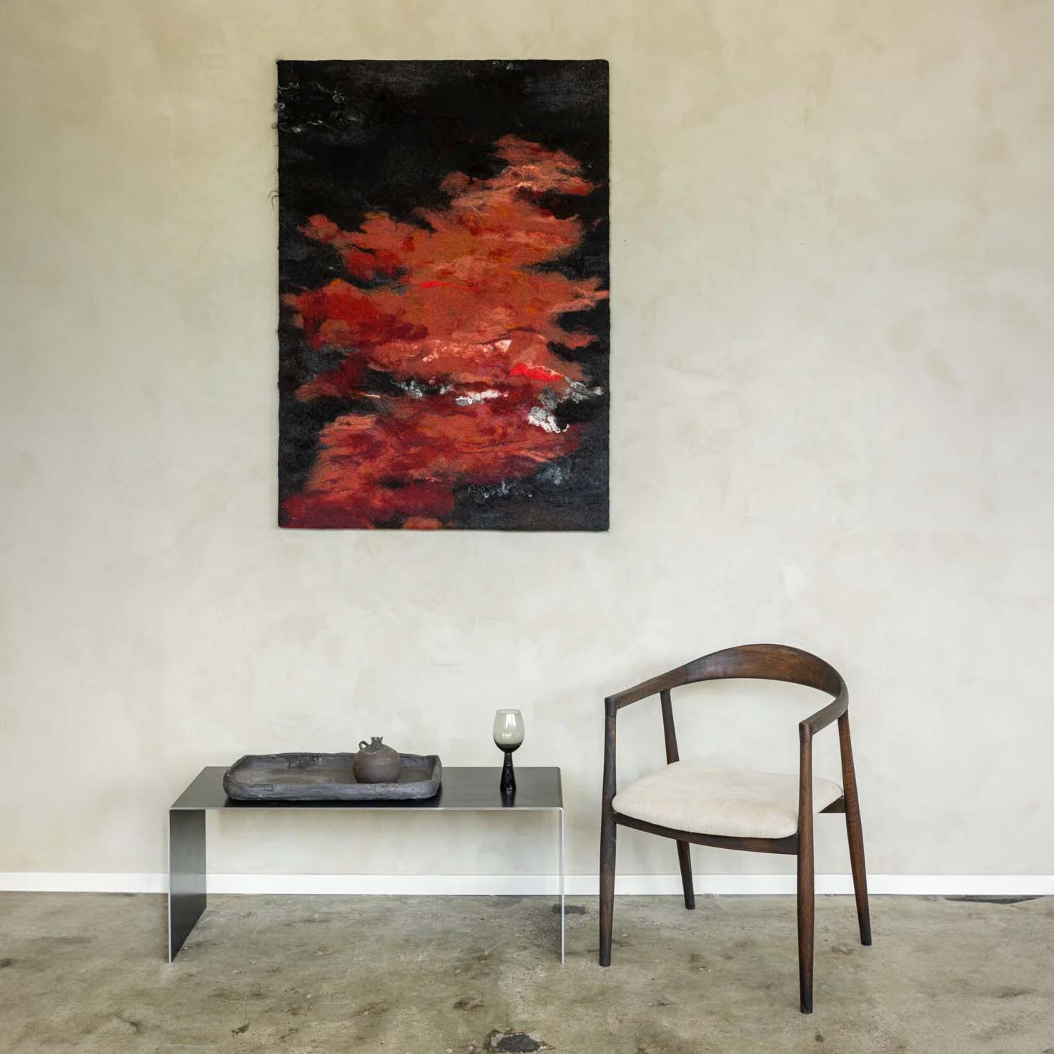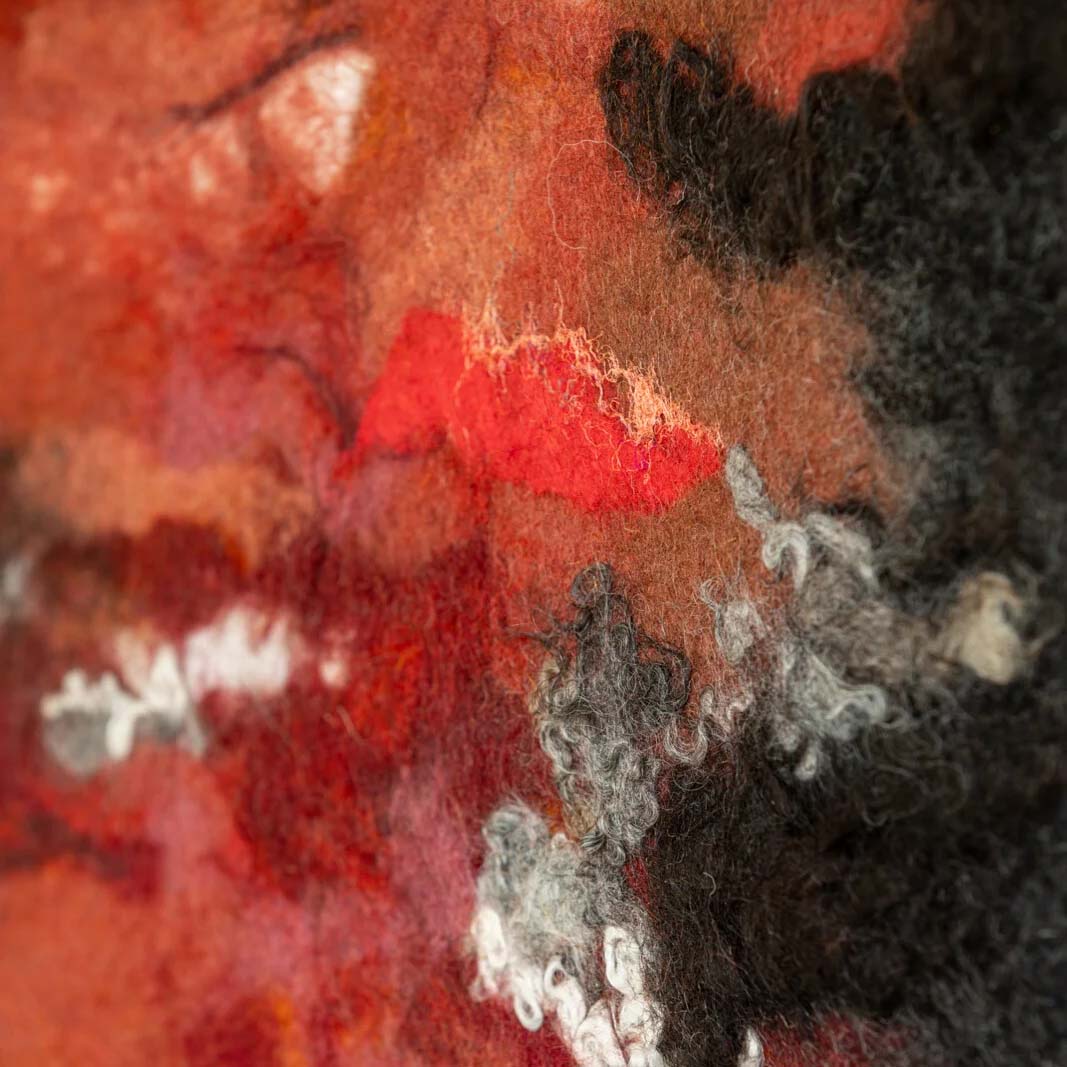 Ambachtelijk geproduceerd wolgevilt wandkleed.