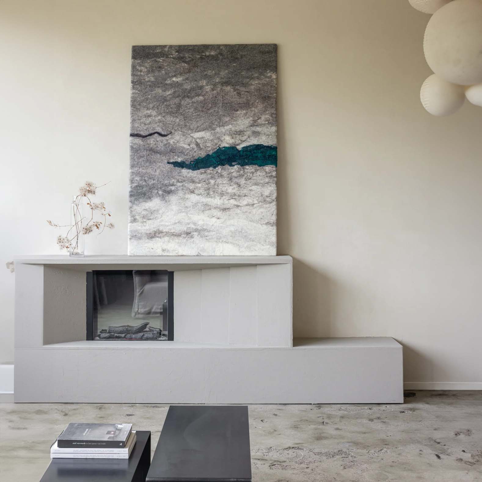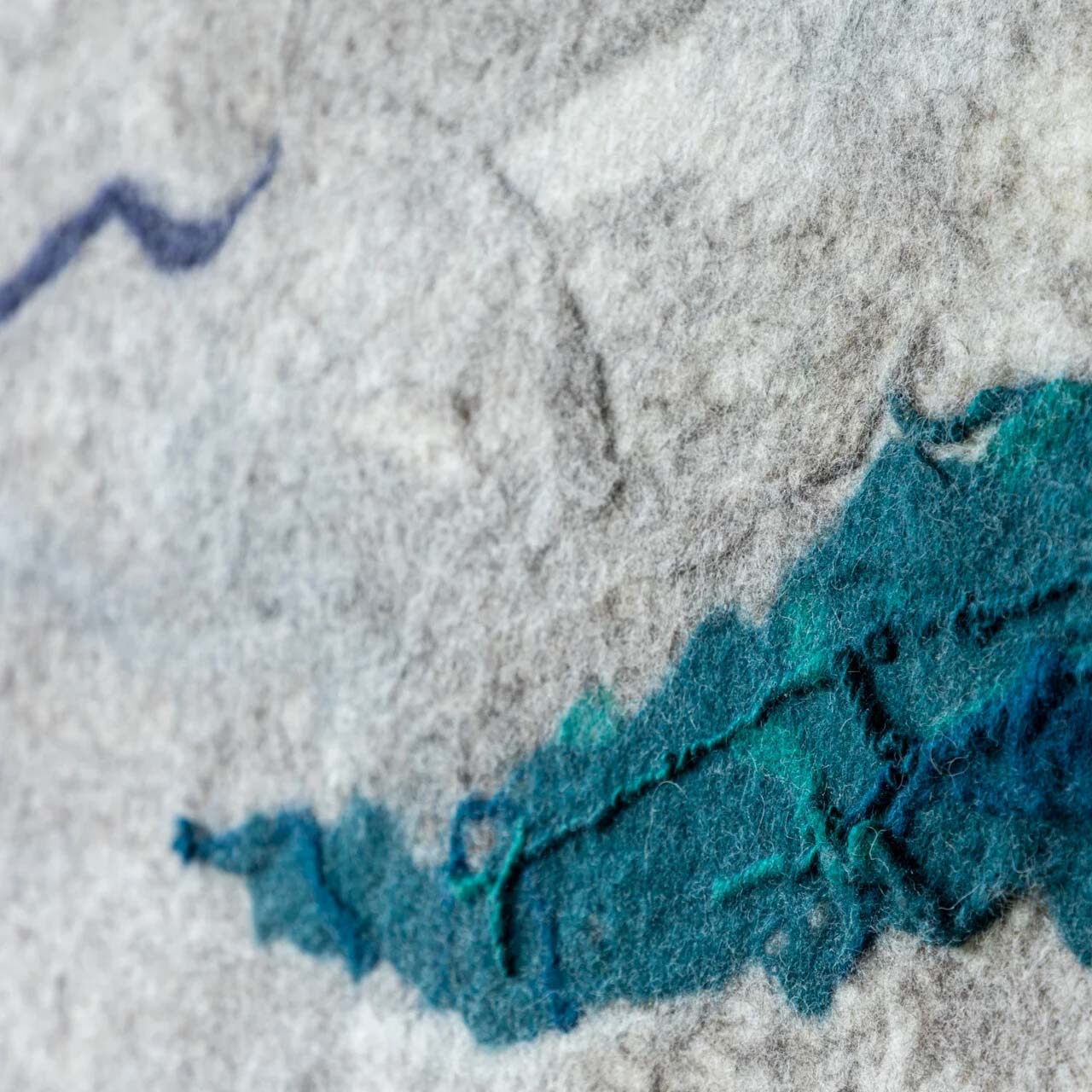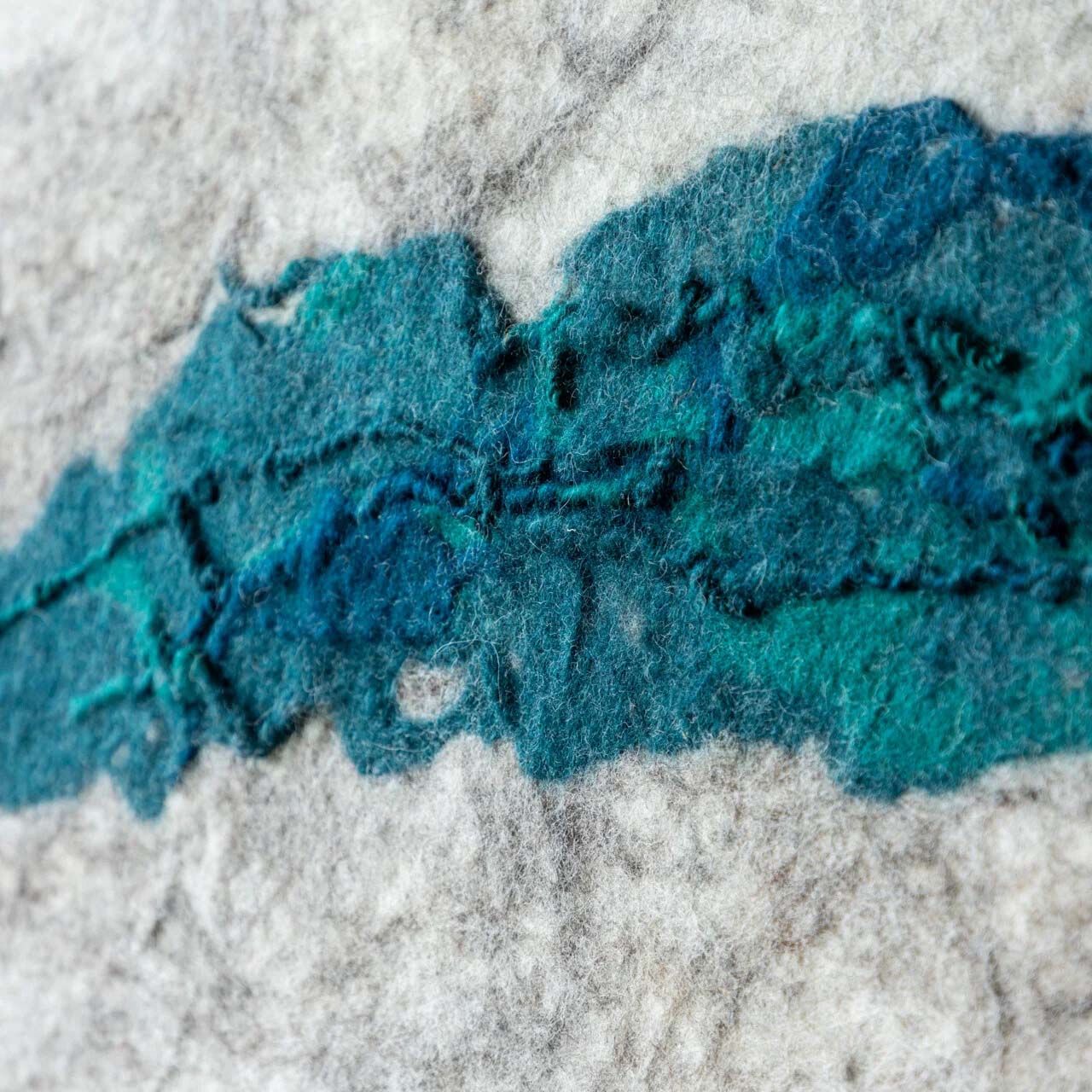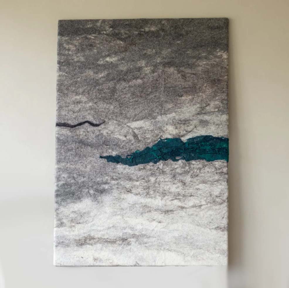 Ambachtelijk geproduceerd wolgevilt wandkleed.